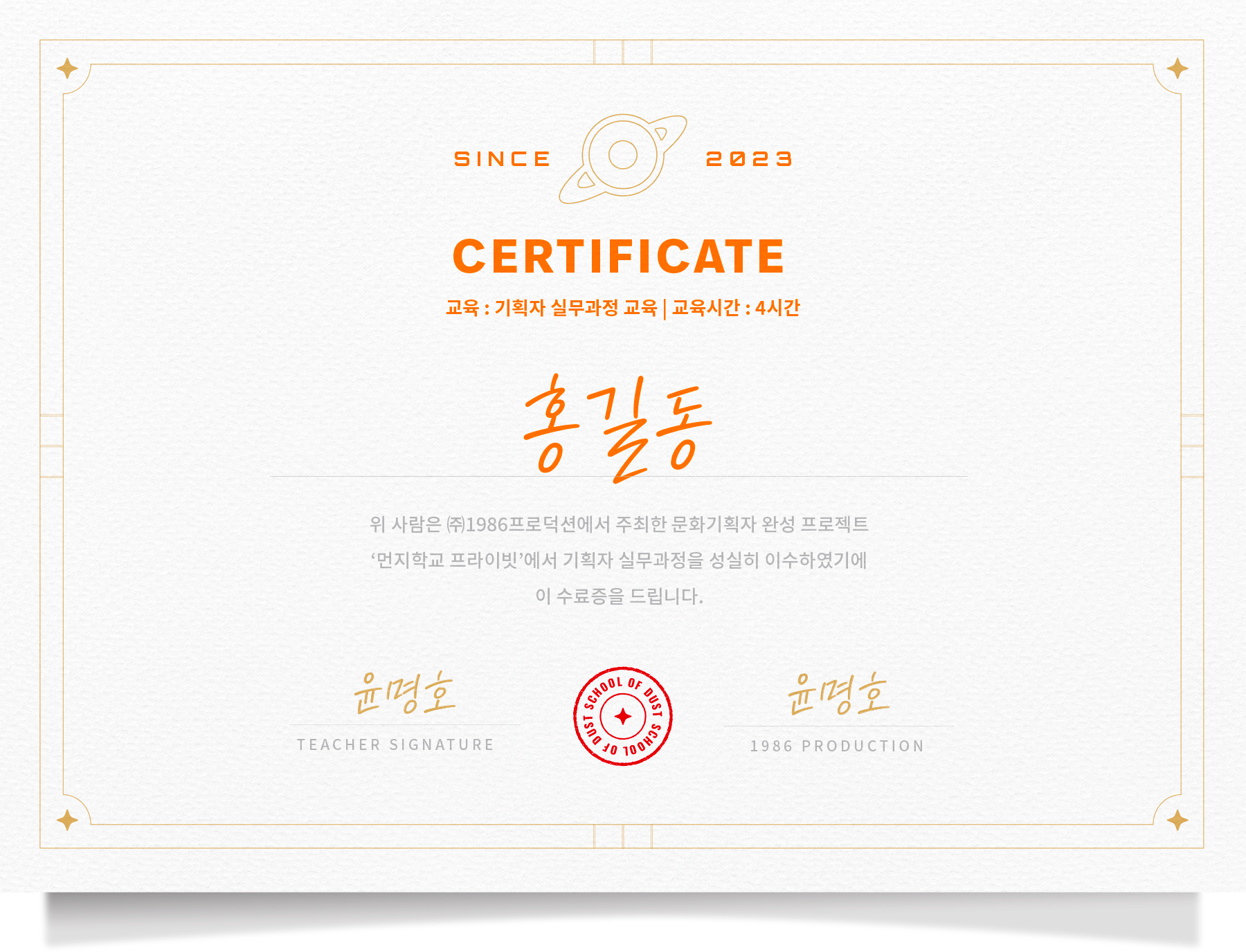 먼지학교 교육 수료증