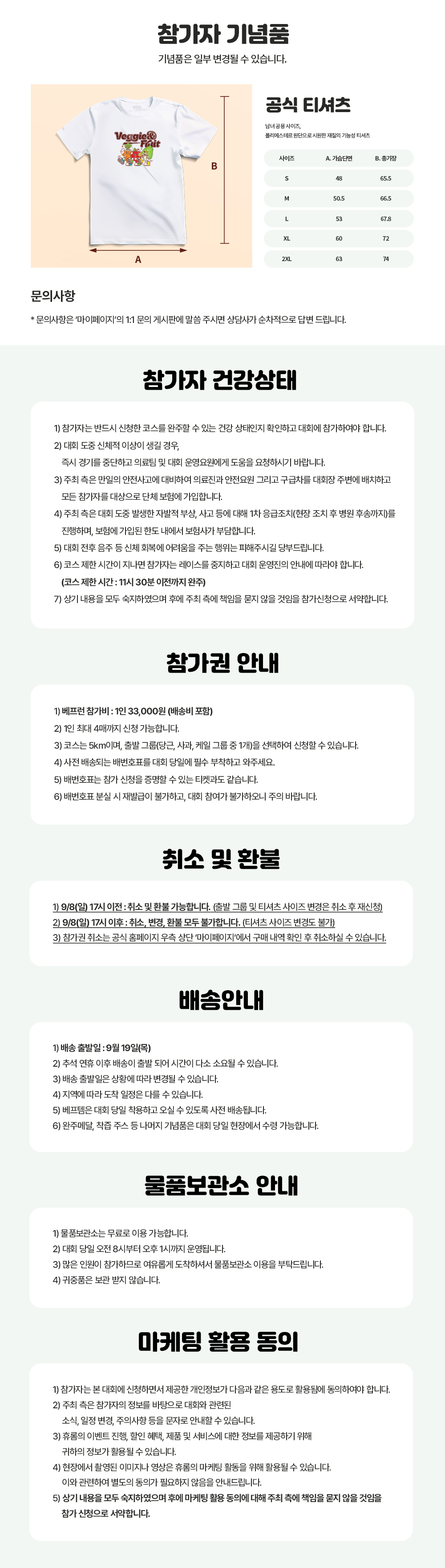 * 해당 참가권은 티셔츠 사이즈 및 참가 그룹 변경과 취소 및 환불이 불가합니다.